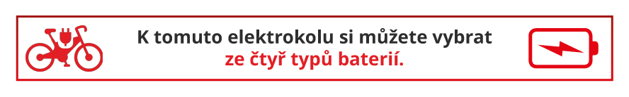 V rámci vyššího komfortu si u tohoto modelu můžete vybrat dokonce ze čtyř typů baterií! Liší se kapacitou a dojezdem, abyste si mohli nakonfigurovat elektrokolo přesně podle Vašich představ. Někdo požaduje co nejdelší dojezd, a pak potřebuje baterii vyšší kapacity, jinému stačí dojezd kratší a tím pádem i slabší baterie. Záleží jen na Vaší volbě. Pokud si vyberete nejsilnější baterii s kapacitou 25 Ah, můžete s tímto elektrokolem ujet na jedno nabití až 200 km!