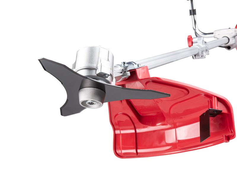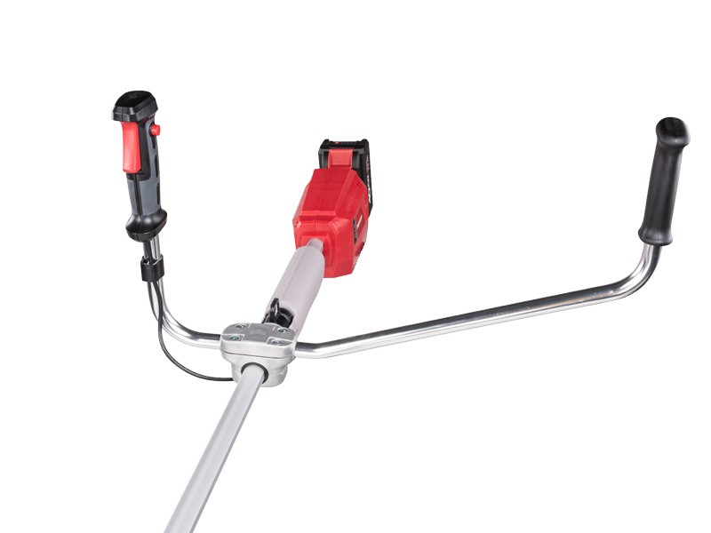 Možnost volby dvou rychlostních režimů umožňuje přizpůsobit výkon konkrétní práci i terénu. Na sečení můžete použít strunovou hlavu se strunou nebo ocelový vyžínací kotouč. Vše je součástí stroje, stejně jako ramenní nosný popruh pro vyšší komfort při práci a méně námahy. K dokonalému vyvážení a úchopu přispívá ergonomická T-rukojeť.