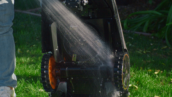 Sekačce nevadí déšť a pro snadnou údržbu ji můžete bez obav očistit zahradní hadicí.