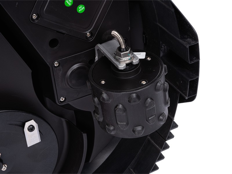 - Pohon všech kol: Model X7 je vybaven pohonem všech kol (AWD), který bezproblémovou trakci i v nejnáročnějším terénu. To mu umožňuje bezpečně a spolehlivě sekat ve svazích se sklonem až 70 %. Systém AWD neotáčí všemi koly najednou, ale otáčení zajišťuje menší středové kolečko. Sekačka se pak pohybuje ladně a při otáčení neničí trávník. Navíc pracuje v paralelních pruzích pro maximální efektivitu sečení.