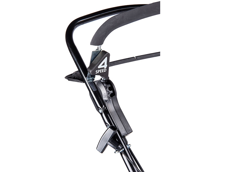 K nadstandardním výbavovým prvkům tohoto stroje patří regulace úrovně pojezdu ve 4 rychlostech pomocí jedné páky. Samozřejmostí je centrální nastavení výšky sečení (2,5 – 9,0 cm).