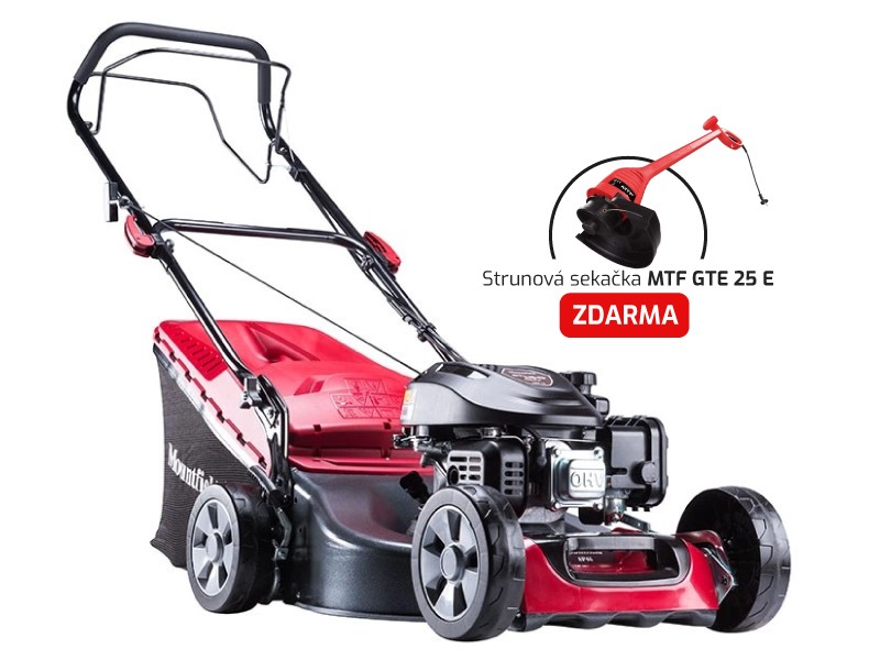 Benzínová samochodná sekačka má záběr 46 cm a pohání ji motor o výkonu 2,2 kW. Stroj má kvalitní ocelové šasi a je vhodný k údržbě středně velkých ploch. Výšku sečení je možné nastavit v 6 polohách centrálně pomocí jedné páky.
