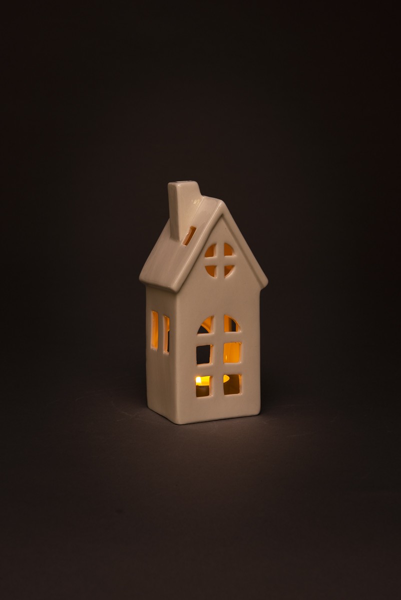 Porcelánový stojan na svíčku ve tvaru domečku s výškou 15 cm. Díky otvorům po obvodu domečku dochází ke krásným světelným efektům.