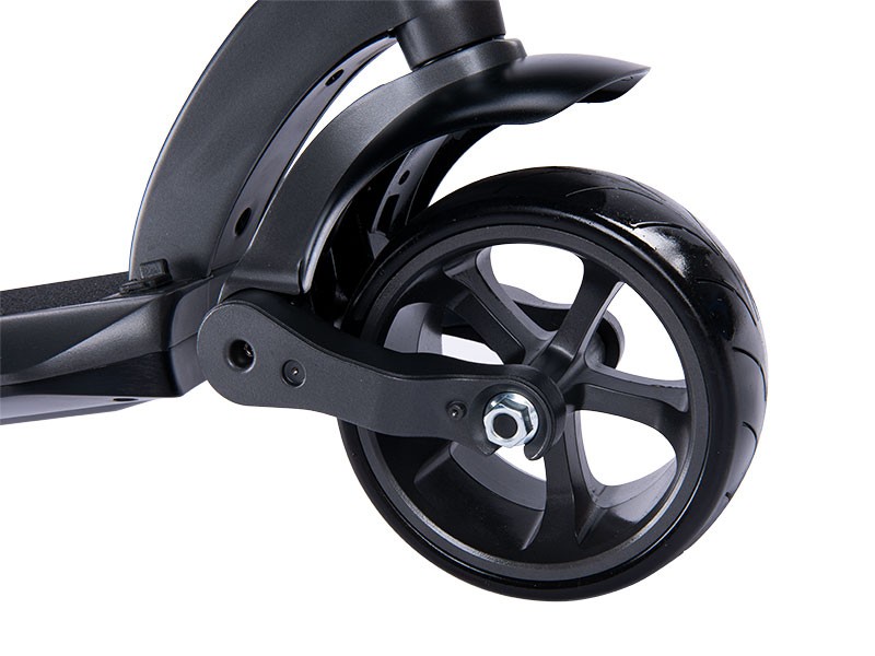 Velkou výhodou je její nosnost – až 150 kg! A také široká nášlapná deska, takže i mohutný chlap tam bez problémů položí své nohy a vychutná si jízdní komfort. Při jízdě zejména po terénních nerovnostech každý ocení přední a zadní kyvnou vidlici, která tlumí nárazy.