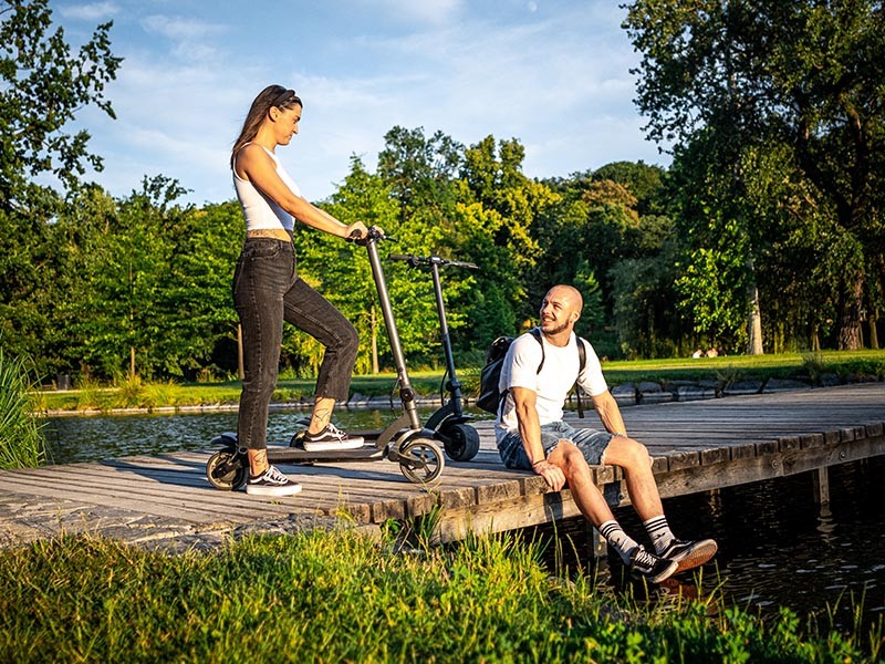 Unikátní elektrokoloběžka s širokými koly, bezdefektovými plášti a předním i zadním odpružením, díky čemuž perfektně absorbuje nerovnosti povrchu a dobře jede třeba i po dlažebních kostkách. Užijete ji v městském provozu i při výletech. Díky kompaktním tvarům se bez problémů proplete úplně všude. Snadno ji složíte a vezmete třeba do prostředků MHD či vlaku.
