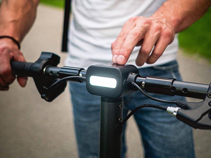 Elektrokoloběžka je vybavena předním i zadním LED světlem, které se spustí na displeji. Při brzdění zadní červené světlo bliká. Součástí výbavy je i praktický stojánek a nabíječka. Na elektrokoloběžku je možné dokoupit sedátko.