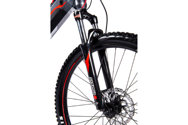 K dostání je v rámových velikostech 18“ a 20“ a má průměr kol 27,5“. K parádnímu elektrokolu jdou ruku v ruce i značkové a prověřené komponenty. Například devítirychlostní přehazovačka Shimano Altus, hydraulické kotoučové brzy Shimano BR-MT201 a kvalitní odpružená vidlice SR Suntour se zdvihem 100 mm, kterou pohodlně zamknete i odemknete pomocní jednoho tlačítka umístěného na řídítkách.