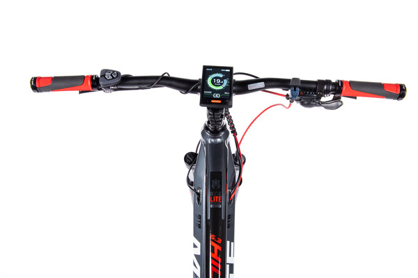 Tam najdete i barevný LCD displej s USB nabíjením, na němž si tlačítky plus a minus regulujete úroveň motorové asistence. Vybírat můžete hned z pěti úrovní podpory. Zároveň na displeji vidíte, kolik procent baterie vám ještě zbývá. Slouží i jako klasický cyklocomputer, takže nabízí údaje jako rychlost, ujetou vzdálenost, čas, dobu jízdy a další.