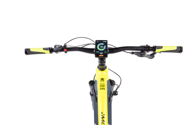Na řídítkách najdete i barevný LCD displej s USB nabíjením, na němž si tlačítky plus a minus regulujete úroveň motorové asistence. Vybírat můžete hned z pěti úrovní podpory. Zároveň na displeji vidíte, kolik procent baterie vám ještě zbývá. Slouží i jako klasický cyklocomputer, takže nabízí údaje jako rychlost, ujetou vzdálenost, čas, dobu jízdy a další.