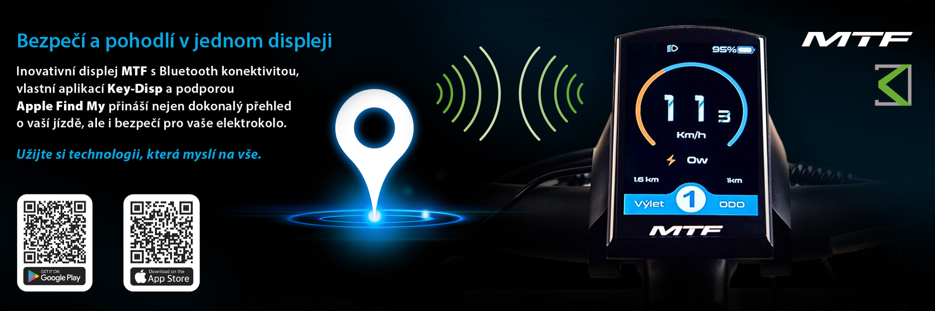 Veškeré údaje o úrovni asistence (na výběr celkem 5 stupňů), stavu baterie a dalších jízdních parametrech jsou zobrazeny na barevném LCD displeji s Bluetooth a USB konektivitou. Skrze aplikaci Key-Disp lze elektrokolo snadno propojit s mobilním telefonem. Navíc tento model nabízí možnost spárování elektrokola s aplikací Apple Find My, díky které je možné vystopovat vaše elektrokolo v případě krádeže.