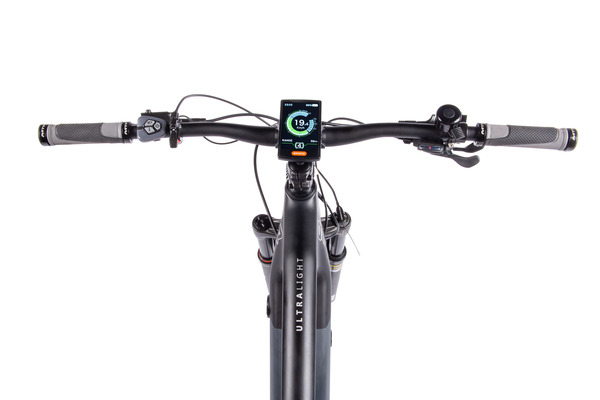 Na řídítkách najdete i barevný LCD displej s USB nabíjením, na němž si tlačítky plus a minus regulujete úroveň motorové asistence. Vybírat můžete hned z pěti úrovní podpory. Zároveň na displeji vidíte, kolik procent baterie vám ještě zbývá. Slouží i jako klasický cyklocomputer, takže nabízí údaje jako rychlost, ujetou vzdálenost, čas, dobu jízdy a další.