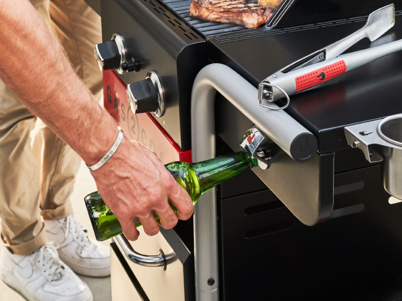 Díky grilovací ploše o rozměrech 64,2 × 43,2 cm, doplňkové grilovací mřížce a boční odkládací ploše můžete pro hosty rozehrát barvitou show chutí a vůní.