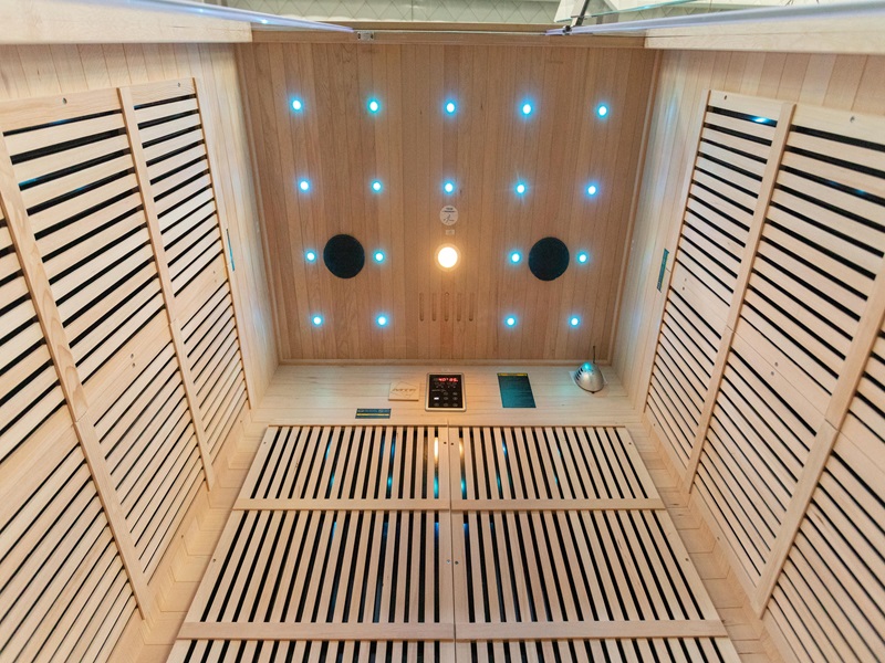 Moderní model infrasauny Kaisa pro 2 osoby má čisté a elegantní linie. Tradicí ověřený tvar kabiny získává díky maximální prosklené ploše průčelí a venkovnímu osvětlení nový rozměr. Naše infrasauna s RGB LED osvětlením ve formě hvězdné oblohy vám přináší nejen zdravotní benefity, ale také jedinečný vizuální zážitek.