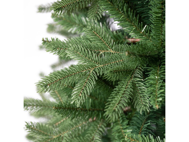 Stromek je vyroben z kvalitního PVC, které věrně napodobuje vzhled skutečné jedle. Husté větvení a přirozený tvar zajišťují bohatý a elegantní vzhled ze všech úhlů. Kovový stojan dodá stromu stabilitu a umožní snadné sestavení.