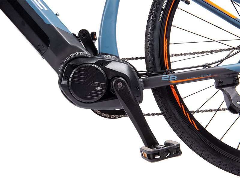 Tento model pohání nový středový motor Bafang M410 s točivým momentem 80 Nm a maximálním výkonem 500 W, který uživateli poskytuje optimální podporu ve všech úrovních asistence a jeho projev je maximálně plynulý. Baterie MTF s články Samsung je plně integrovaná v rámu a vybírat můžete hned z pěti typů, které se liší kapacitou a dojezdem.
