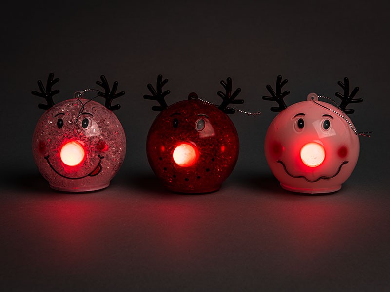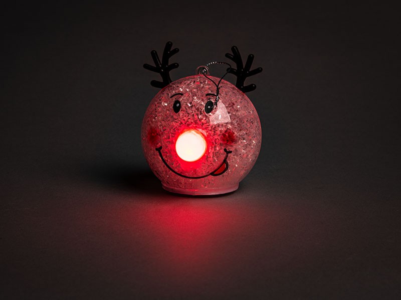 Dekorativní sob o rozměru 8,5 x 12 cm s LED žárovkou vydávající teplé nílé světlo.
