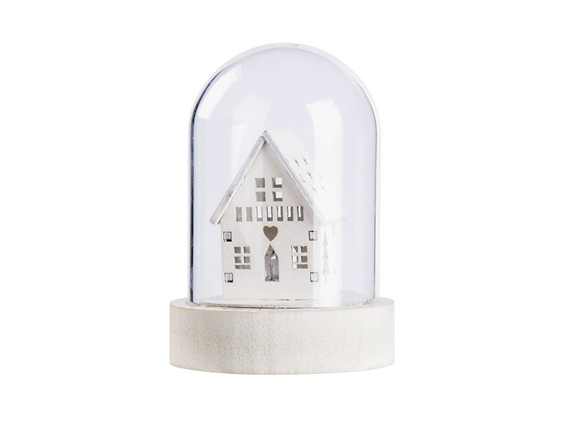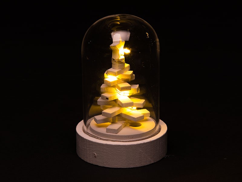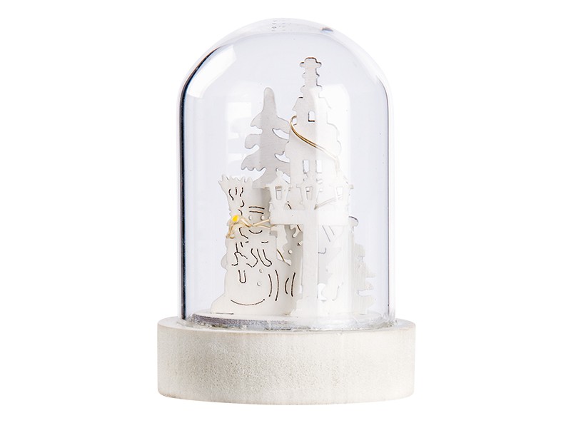 Netradiční vánoční a zimní dekorace ve skleněných baňkách vysokých 8,5 cm. LED světlo vykouzlí krásnou atmosféru například zimního lesa nebo vánoční vesničky.