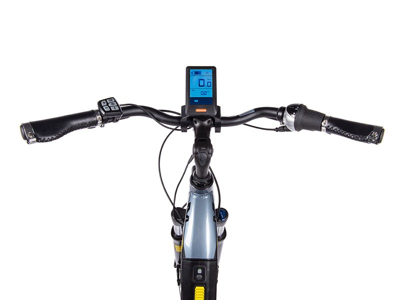 City 5.4 však má i řadu dalších vychytávek. Ještě lepší úchop řídítek zaručí gripy z imitace kůže. Výšku i sklon řídítek si navíc můžete nastavit podle vlastní potřeby díky nastavitelnému představci. Úroveň motorové asistence (celkem 5 stupňů) regulujete pomocí dvou tlačítek umístěných na řídítkách a všechny důležité údaje o jízdě včetně úrovně asistence vidíte na přehledném LCD displeji.
