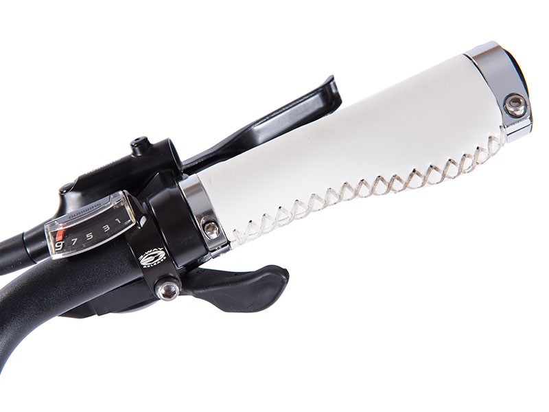 Má komfortní sedlo, nosič, světla, blatníky. Řídítka se drží doslova báječně díky prošívaným gripům z bílé imitace kůže.