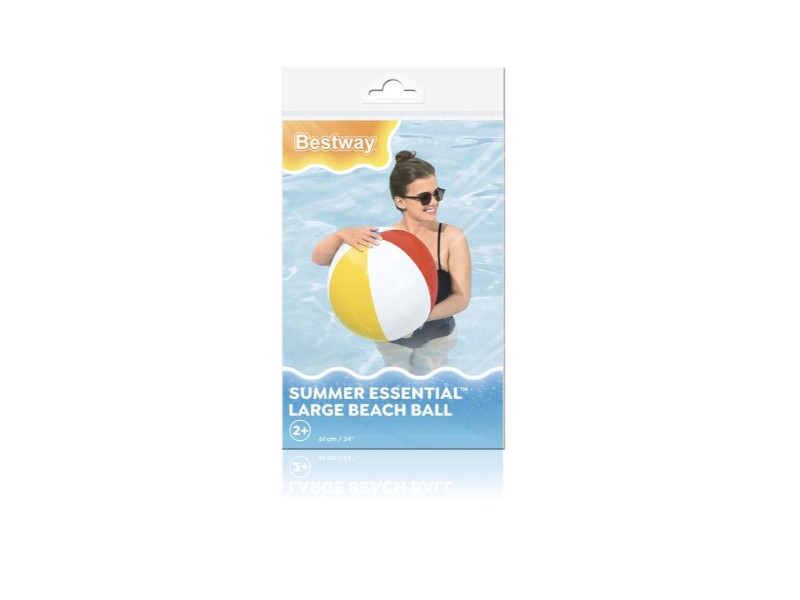 Barevný plážový míč o průměru 61 cm je ideálním doplňkem pro dovolenou, výlet k vodě nebo hry na zahradě. Lehký, snadno nafukovací a vhodný pro děti i dospělé.