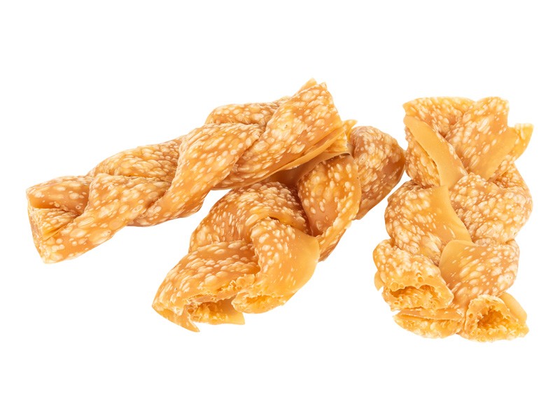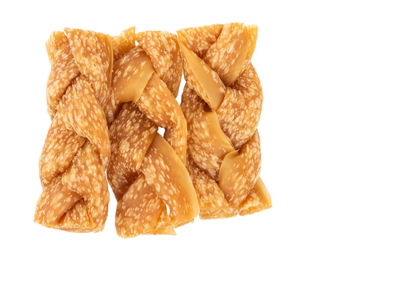 Voňavý kuřecí pletenec, který potěší každého čtyřnohého gurmána. Díky atraktivnímu tvaru pletence a vyváženému složení je ideální jako zdravá odměna, svačinka nebo zpestření běžného jídelníčku. Kuřecí maso je lehce stravitelné, bohaté na živočišné bílkoviny. Batáty jsou výborným zdrojem vlákniny, vitamínů a pomalu uvolňující energie. Zbytek složení tvoří vybrané obilné a rostlinné složky, které doplňují nutriční profil. Doplňkové krmivo pro psy, skvělá volba pro pejsky, kteří mají rádi dentální pamlsky s jemnou masovou chutí a kvalitním složením.