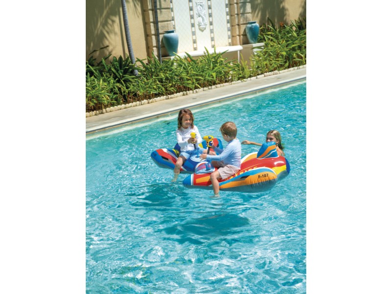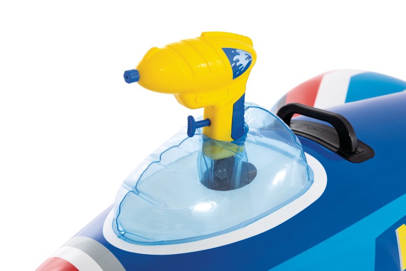 Nafukovací raketa do vody s pevným madlem na držení. Součástí je zabudovaná vodní pistolka. Pro děti od 3 let.