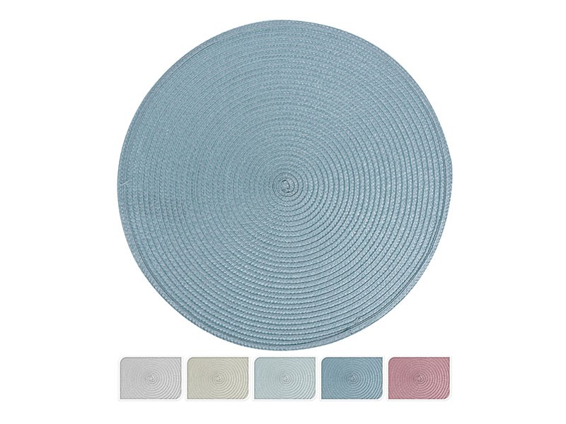 Tkané prostírání o průměru 38 cm. Na výběr pět barev: bílá, krémová, světle modrá, světle zelená, růžová.