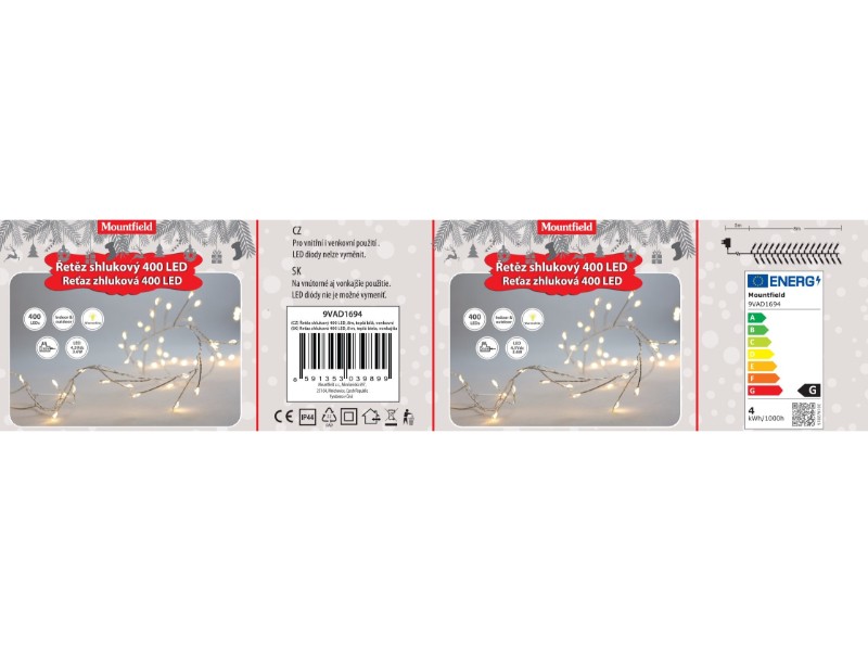 Shlukový světelný řetěz s 400 LED diodami v teplé bílé barvě dodá vašemu venkovnímu prostoru okouzlující vánoční lesk. Husté uspořádání světýlek vytvoří působivou a magickou atmosféru, která rozjasní každý zimní večer.