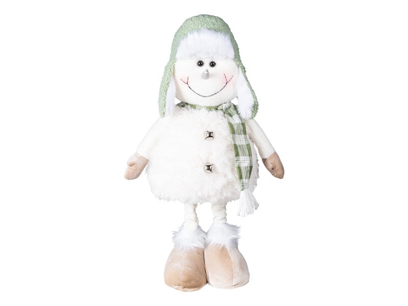 Tento roztomilý sněhulák v bílo-zelenkavém provedení vnese do vašeho domova radostnou zimní náladu. Díky své výšce 34 cm se skvěle hodí jako dekorace na stůl, komodu nebo okenní parapet. Jeho jemné barvy a hravý vzhled z něj dělají ideální doplněk nejen pro vánoční období, ale i pro celou zimní sezónu. Sněhulák se zelenou čepicí potěší děti i dospělé a snadno se stane oblíbenou součástí vaší sváteční výzdoby.