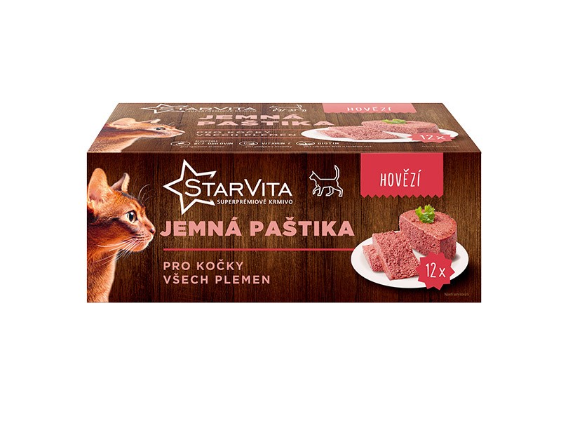 Starvita paštika pro dospělé kočky, hovězí 12x85g
