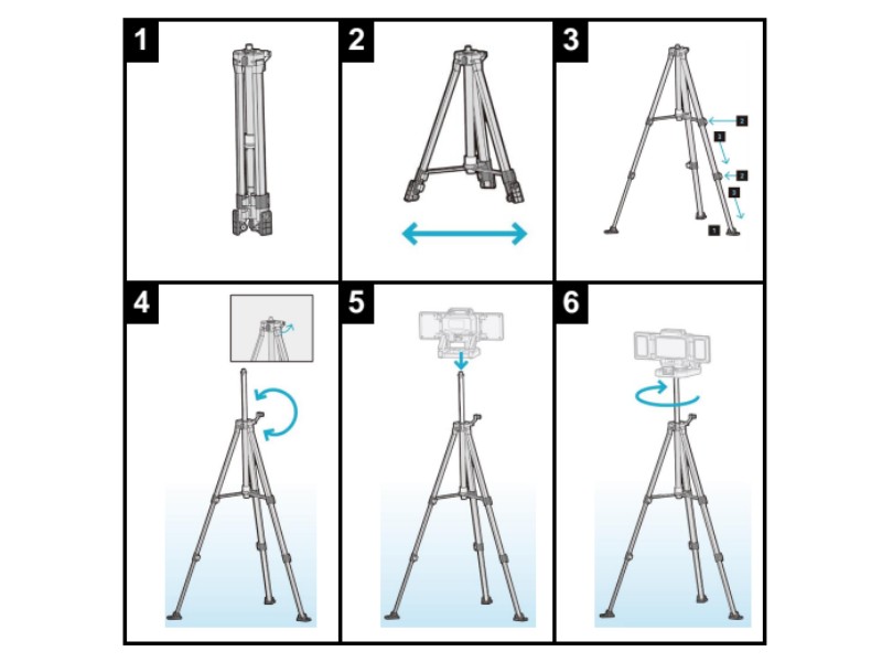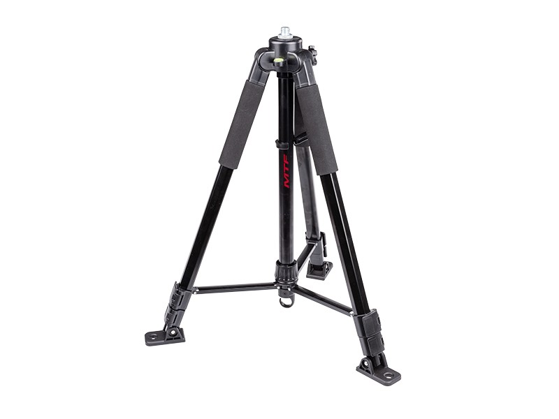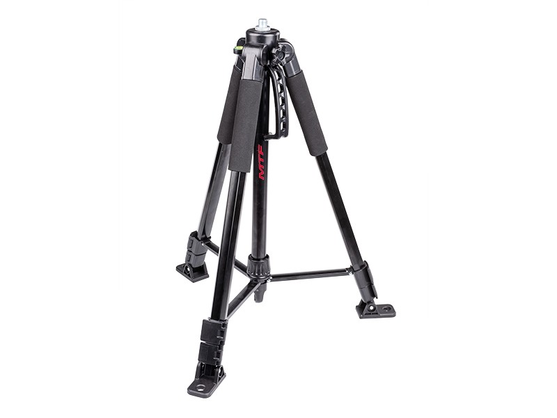 Díky lehké konstrukci z hliníkových profilů v kombinaci s plastovými prvky je stativ snadno přenosný a zároveň stabilní. Tři dělené výsuvné nohy lze jednoduše nastavit a zajistit pomocí plastových rychloupínacích spon. Výkyvné plastové botky s otvory pro ukotvení umožňují bezpečné použití i v terénu. Středová tyč je vybavena plastovým ozubeným hřebenem a ovládána sklopnou plastovou kličkou, která umožňuje plynulé vysouvání. Pro přesné vyrovnání stativu slouží integrovaná libela, umístěná na hlavě stativu. Na konci středové tyče se nachází kovová koncovka s vnějším závitem 5/8", vhodná pro upevnění LED světla.