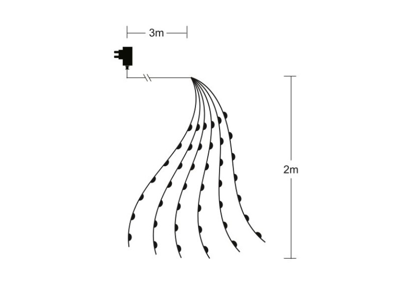 Dobrý den, Dobrý den, délka struny je 2 m, délka přívodního kabelu je 3 m. Tato dekorace je tvořena z několika 2 metrových pramenů. Počet diod odpovídá skutečnosti. Váš Mountfield