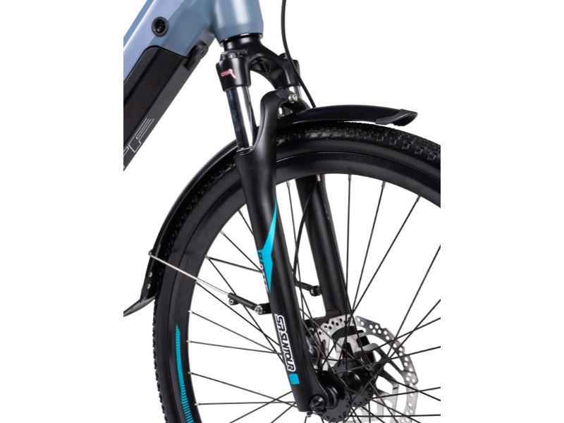 - Odpruženou vidlici SR SUNTOUR NEX (zdvih 63 mm, uzamykatelná z řídítek)
