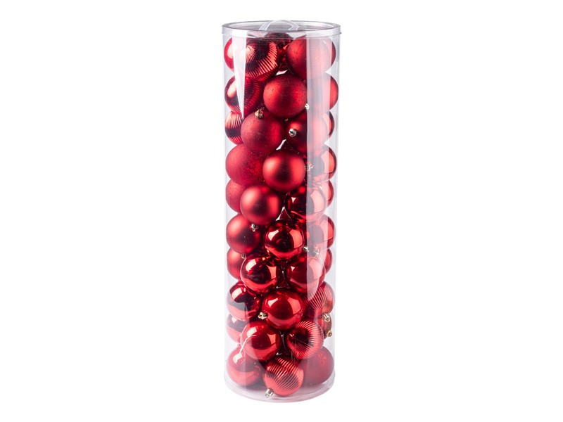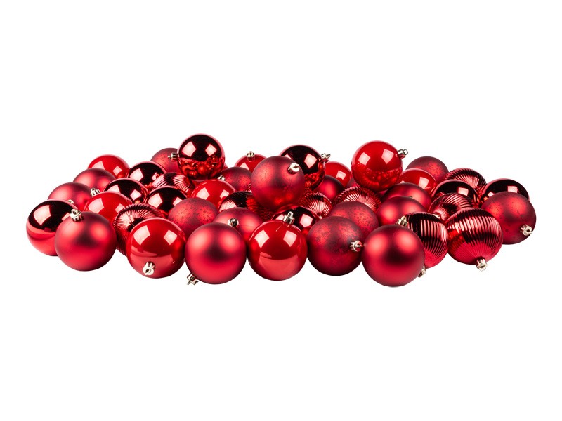 Sada 50 vánočních koulí v sytě červené barvě rozzáří každý stromeček a dodá mu hřejivý, tradiční nádech. Kombinace lesklého, matného a třpytivého provedení vytváří krásný vizuální kontrast a dodává výzdobě hloubku i eleganci.