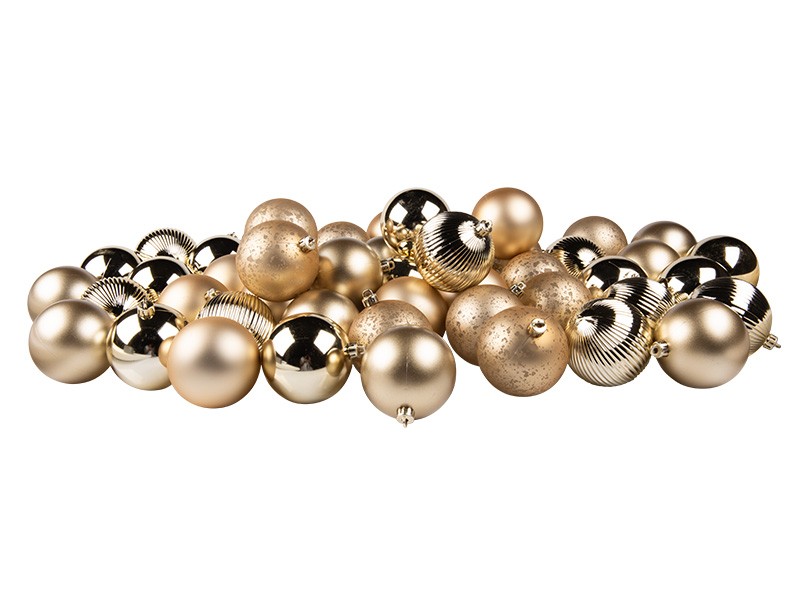 Zahalte svůj stromeček do třpytu svátků se sadou 50 vánočních koulí ve zlaté barvě, která nikdy neztrácí na eleganci.