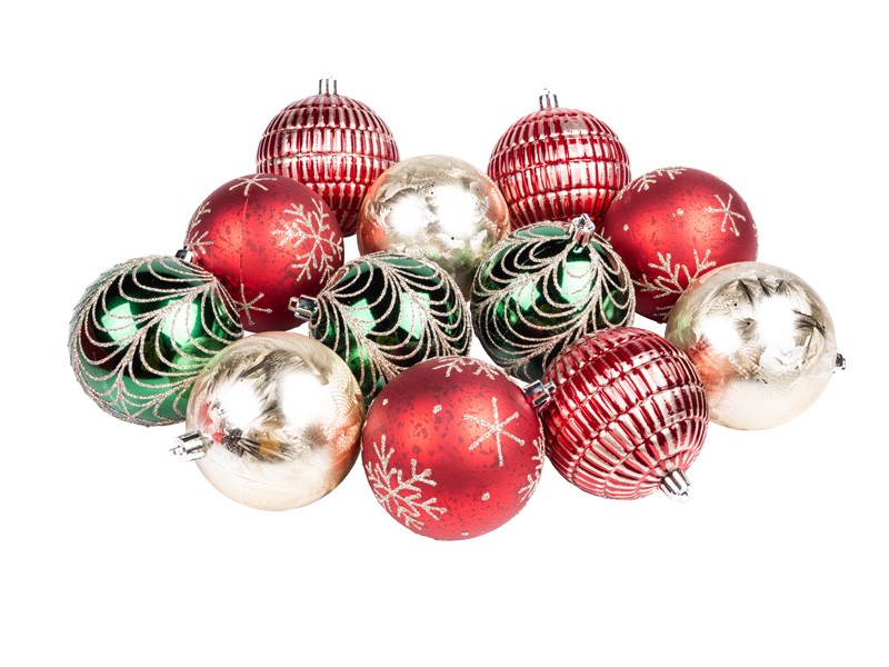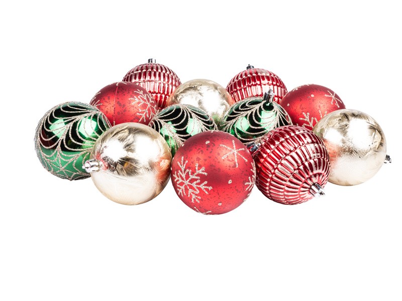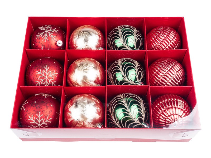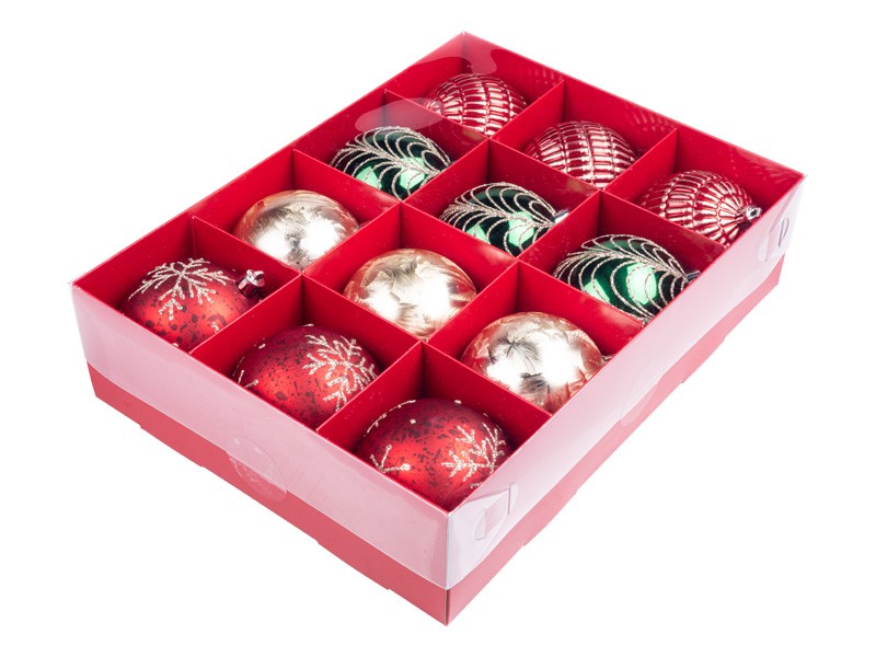 Vánoční koule, tradiční set, 12x80 mm