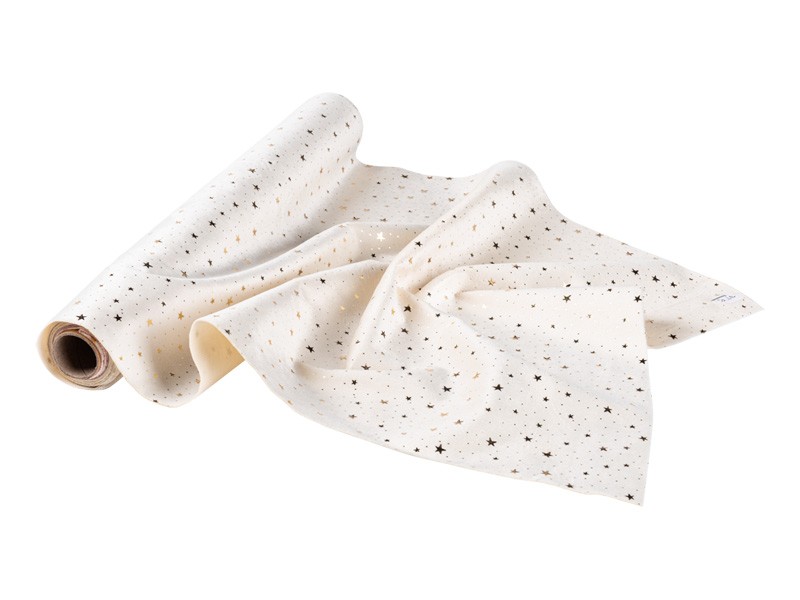 Díky šířce 35 cm a délce 250 cm je tato šerpa ideální pro zdobení slavnostního stolu, komody nebo parapetu.