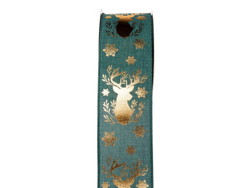 Vánoční stuha zelená s potiskem,6,3cm x 910cm