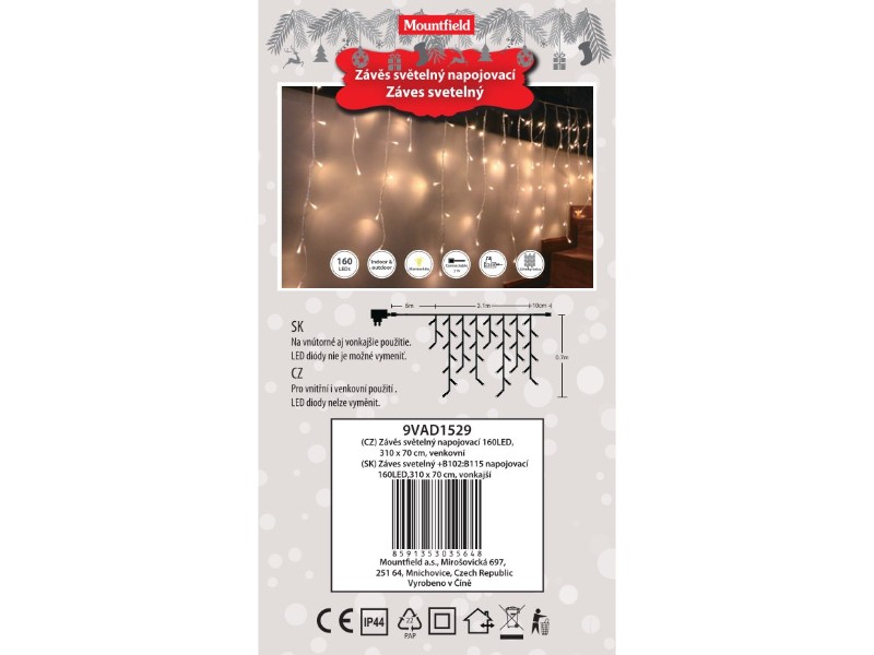Přidejte do venkovní výzdoby kouzlo Vánoc s tímto světelným napojovacím závěsem. Závěs má 160 teplých bílých LED diod a rozměry 310 x 70 cm.