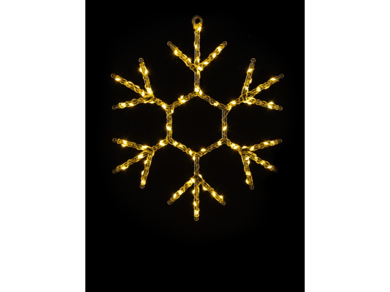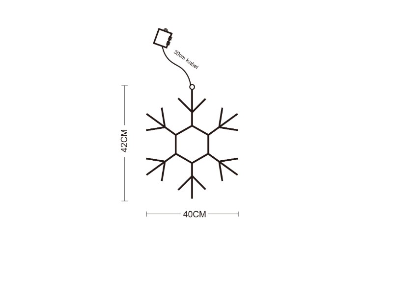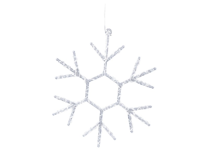 Krásná plastová dekorace ve tvaru sněhové vločky o rozměrech 35 × 42 cm rozzáří vaši zimní výzdobu jemným světlem 90 teple bílých LED diod. Díky napájení na baterie (3× AA, nejsou součástí balení) a transparentnímu kabelu s 30cm přívodem ji snadno zavěsíte kamkoli – na dveře nebo okno. Venkovní použití umožňuje krytí IP44 a praktická krabička s funkcí časovače (8 funkcí) pro pohodlné ovládání.