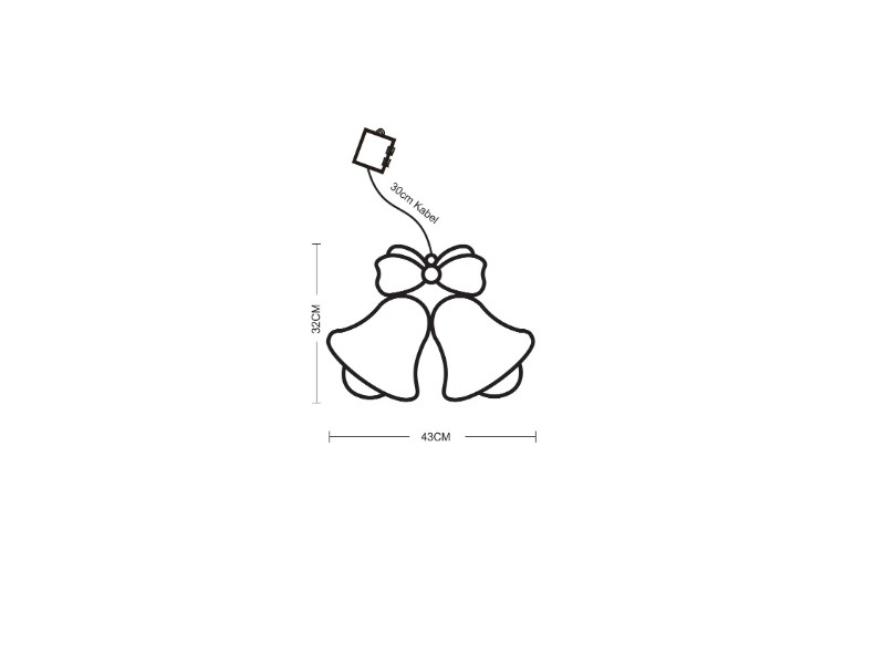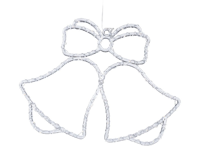 Elegantní vánoční dekorace ve tvaru zvonků s rozměry 43 × 32,5 cm je osazena 70 teple bílými LED diodami. Díky napájení na 3× AA baterie (nejsou součástí balení) a transparentnímu kabelu s 30cm přívodem je vhodná k zavěšení kamkoli v exteriéru. Krytí IP44 zajišťuje bezpečné venkovní použití, praktická bateriová krabička s časovačem a 8 světelnými režimy nabízí snadné ovládání i bez přístupu k zásuvce.